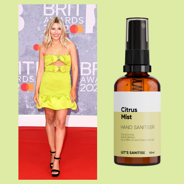 Mollie King Turned heads in citrus yellow. This pocket-sized citrus mist spray has a natural blend of lemon, orange blossom, and lemongrass that work together in this uplifting scent to boost your mood. Her bright and bold look, therefore, had to be accompanied by a refreshing and vibrant loop scent.